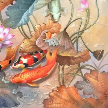 首页 --> 艺术商城 --> 动物油画 --> 九鱼图 --> 字画美官方旗舰店 --> 新中式年年有余和气生财荷花池九鱼图实木外框