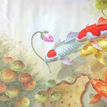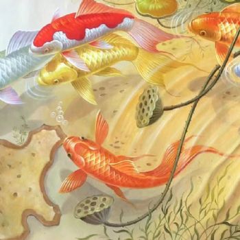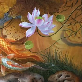 首页 --> 艺术商城 --> 油画花卉 --> 荷花 --> 字画美官方旗舰店 --> 荷花池九鱼图纯手绘新中式客厅油画实木外框