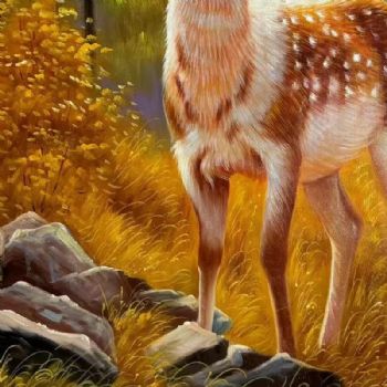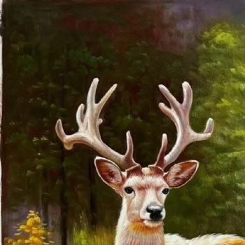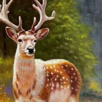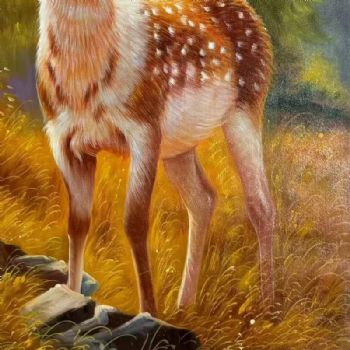 • 梅花鹿写实动物油画作品