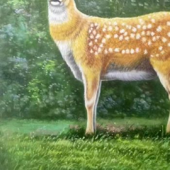 手绘梅花鹿动物油画