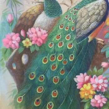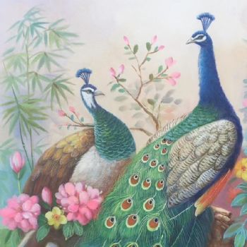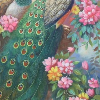 • 孔雀写实油画玄关动物油画