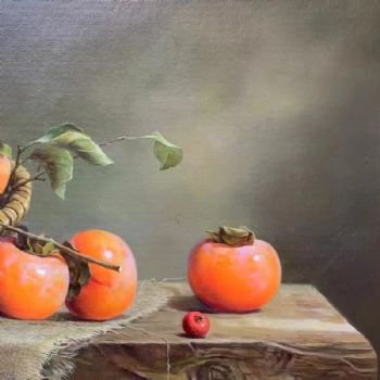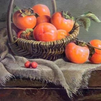 • 精品写实朝鲜油画柿柿如意柿子图纯手绘收藏静物油画