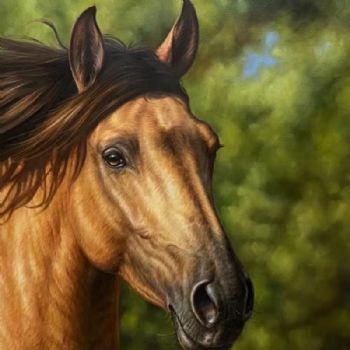 • 精品写实动物油画纯手绘动物油画一马当先马头油画