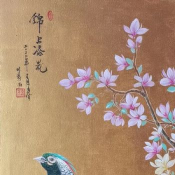 • 动物油画锦上添花锦鸡图