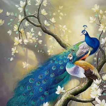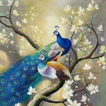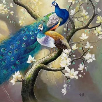 • 纯手绘孔雀油画