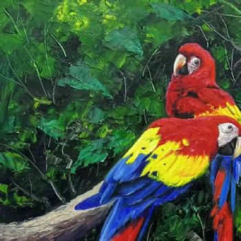 • 办公室动物油画金钢鹦鹉手绘油画
