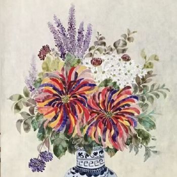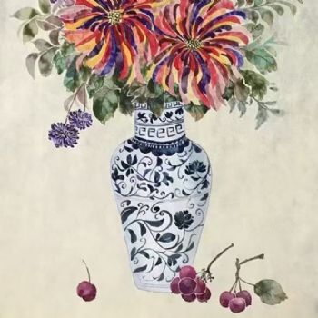 蓝色的花瓶水墨国画纯手绘花卉国画48小时之内发货