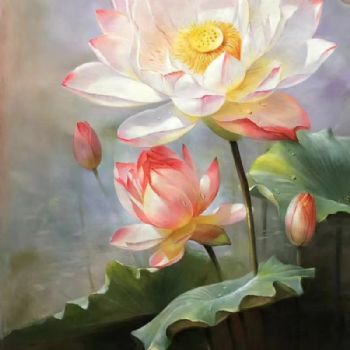首页 --> 艺术商城 --> 油画花卉 --> 荷花 --> 字画美官方旗舰店 --> 纯手纯粉红荷花写实油画艳鲜欲滴餐厅挂画和气生财