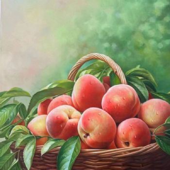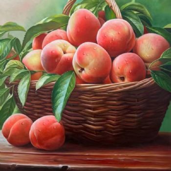 • 一筐桃子纯手绘水果静物写实油画桃李满天下送老师实木外框