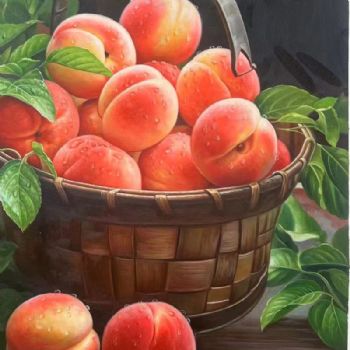 中式写实油画桃子