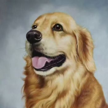 • 金毛庞物写实油画纯手绘动手油画儿童油画实木外框