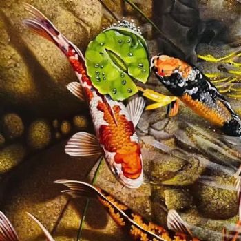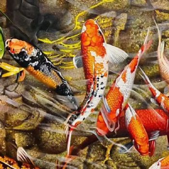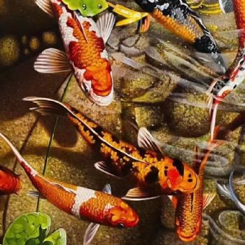 • 客厅精品花鸟油画手绘锦鲤油画