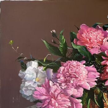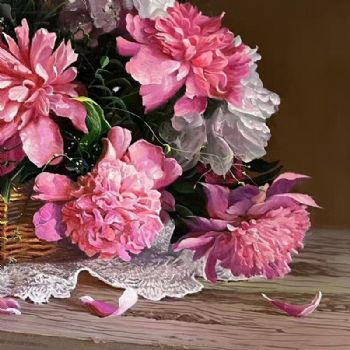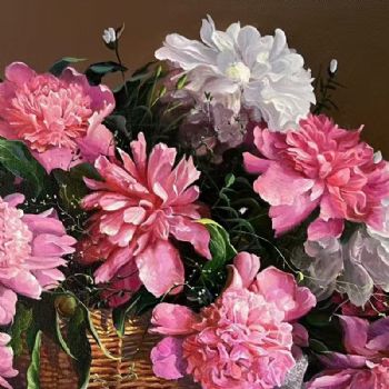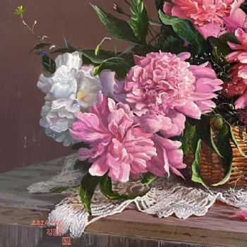 • 精品写实朝鲜油画花卉油画粉红色的花卉静物写实实木外框