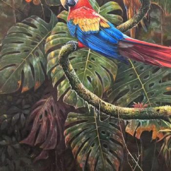 • 适合办公室的动物油画鹦鹉油画