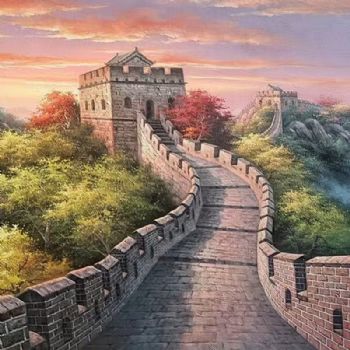 新中式长城风景油画纯手绘工笔写实油画七天之内发货
