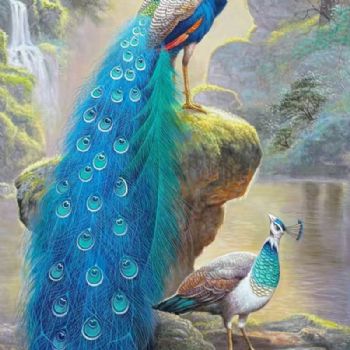 • 精品孔雀写实油画纯手绘玄关走廊动物油画孔雀上墙幸福吉祥实木外框
