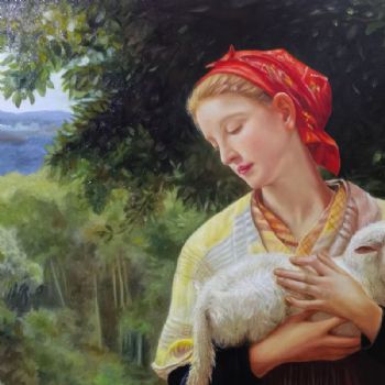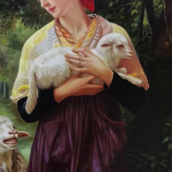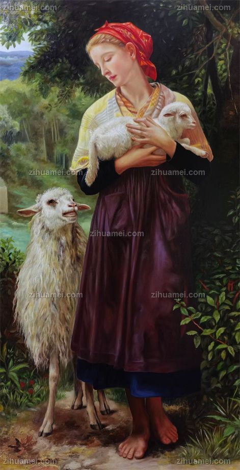 • 欧美人物写实油画牧羊女纯手绘人物油画精品收藏油画