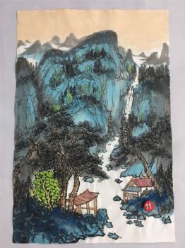 首页 --> 艺术商城 --> 国画山水画 --> 写意山水画 --> 字画美官方旗舰店 --> 浓墨重彩纯手绘小写意山水画四尺三开山水国画实木外框