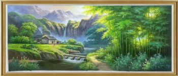 首页 --> 艺术商城 --> 油画风景画 --> 原创风景油画 --> 字画美官方旗舰店 --> 竹林人家手绘中式客厅风景油画实木外框