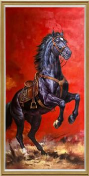 首页 --> 艺术商城 --> 动物油画 --> 八骏图马头 --> 字画美官方旗舰店 --> 一马当先马到成功纯手绘奔马图写实油画实木外框动物油画