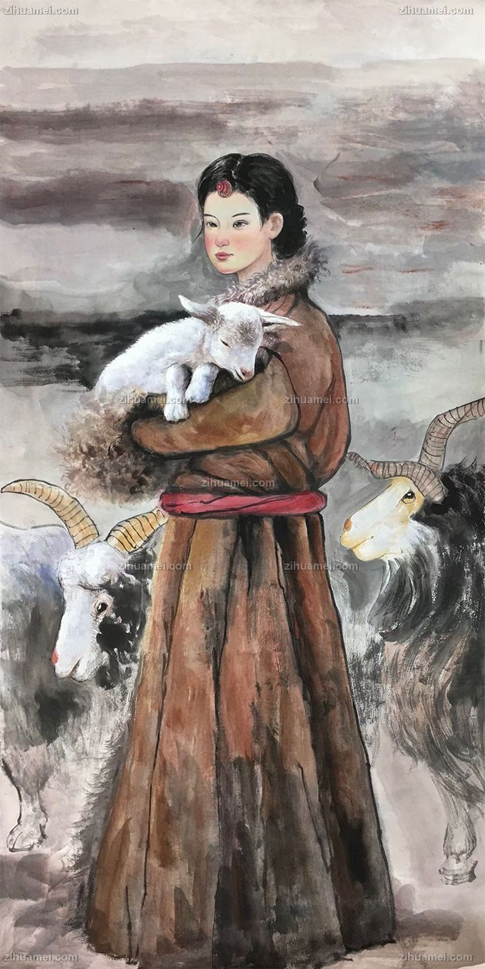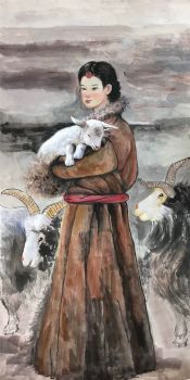 首页 --> 艺术商城 --> 国画人物画 --> 现代人物画 --> 字画美官方旗舰店 --> 水墨国画牧羊女人物国画纯手绘美女仕女国画客厅酒店国画实木外框