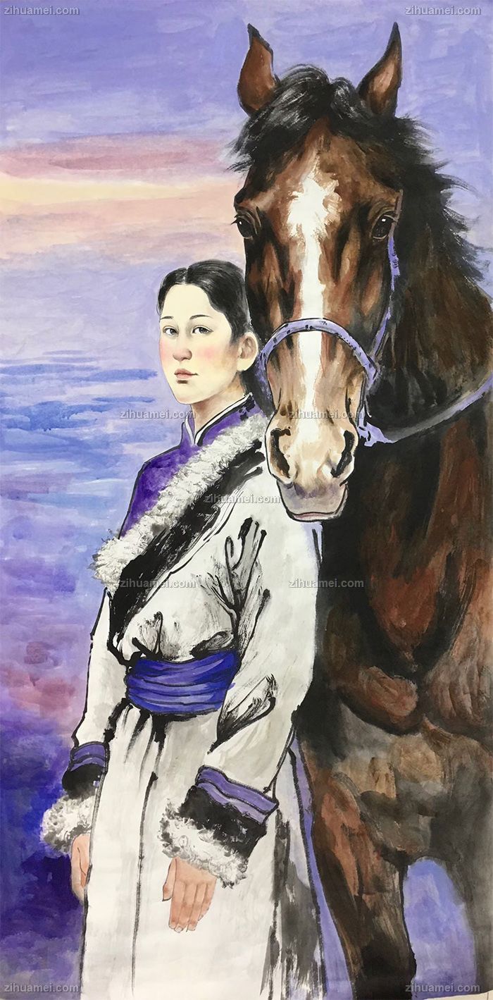 首页 --> 艺术商城 --> 国画人物画 --> 现代人物画 --> 字画美官方旗舰店 --> 牵马的女人手绘人物国画纯手绘美女仕女国画客厅酒店国画实木外框
