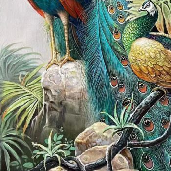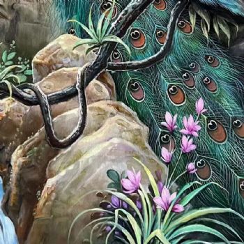 • 动物花卉手绘油画孔雀图