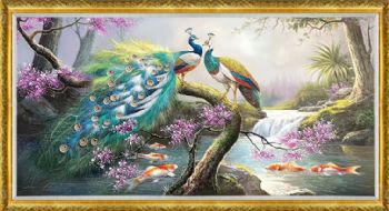 首页 --> 艺术商城 --> 动物油画 --> 孔雀 --> 字画美官方旗舰店 --> 横幅精品工笔写实孔雀图客厅大厅手绘动物油画实木外框