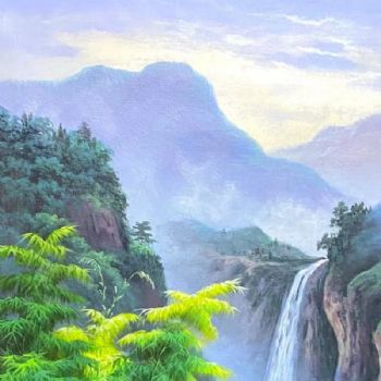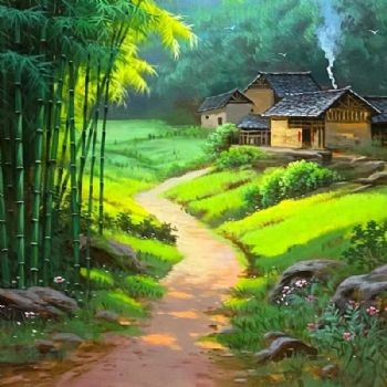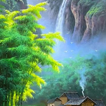 首页 --> 艺术商城 --> 油画风景画 --> 村庄风景油画 --> 字画美官方旗舰店 --> 瀑布流水人家竹林风景油画纯手绘油画实木画框