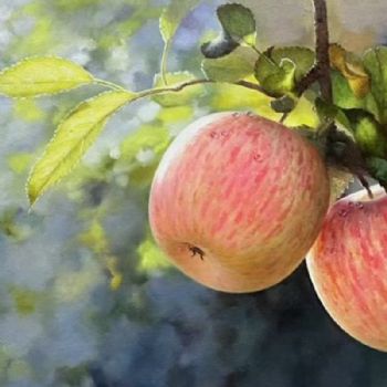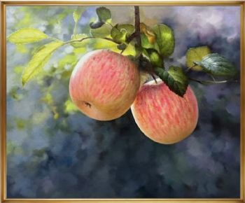 • 实木外框超写实手绘苹果油画