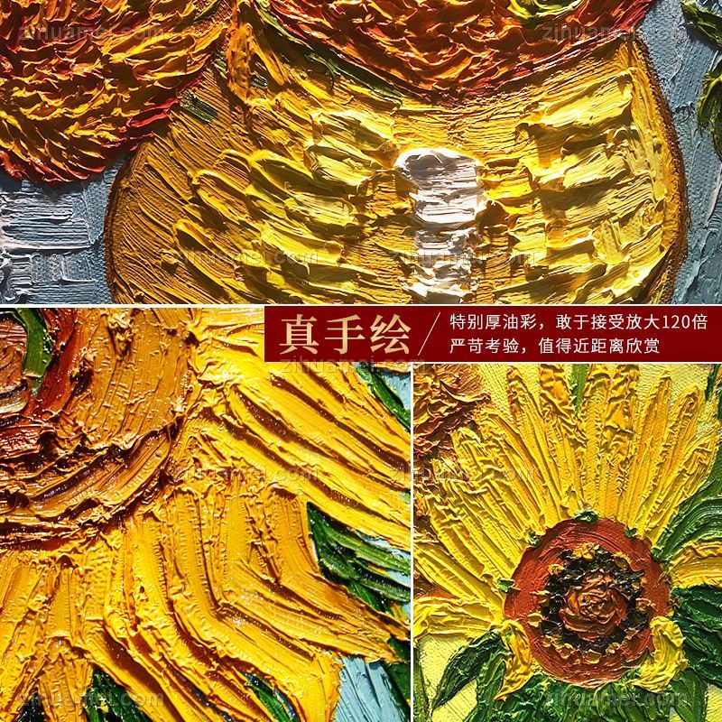 • Van Gogh oil painting sunflower living room decorative painting European hand-painted light luxury Van Gogh famous painting porch mural Hotel hanging painting