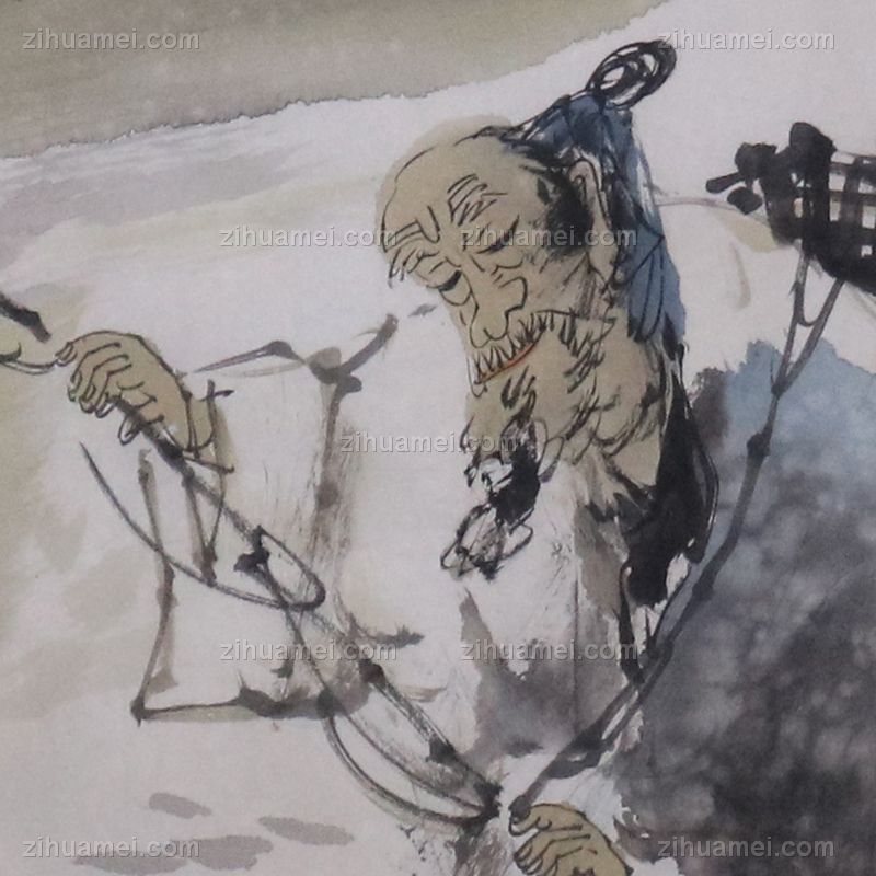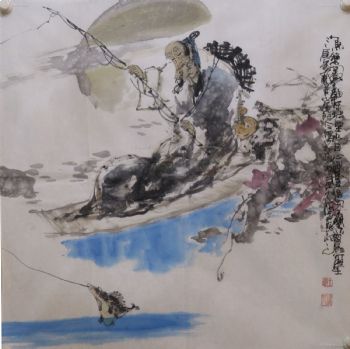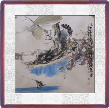国画 老者垂钓