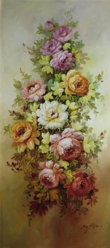 • Pure hand-painted original oil painting flowers bloom rich line box