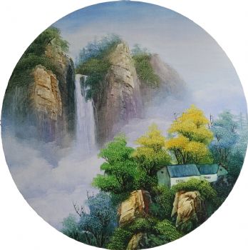 • Hand painted knife painting landscape painting round oil painting 40 * 40cm works are very beautiful and have a strong sense of three-dimensional family hanging painting 004
