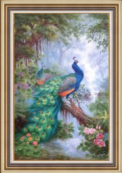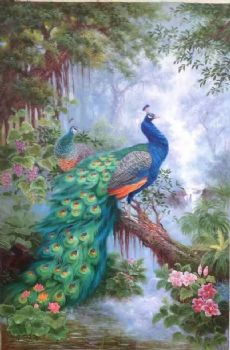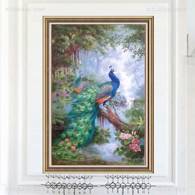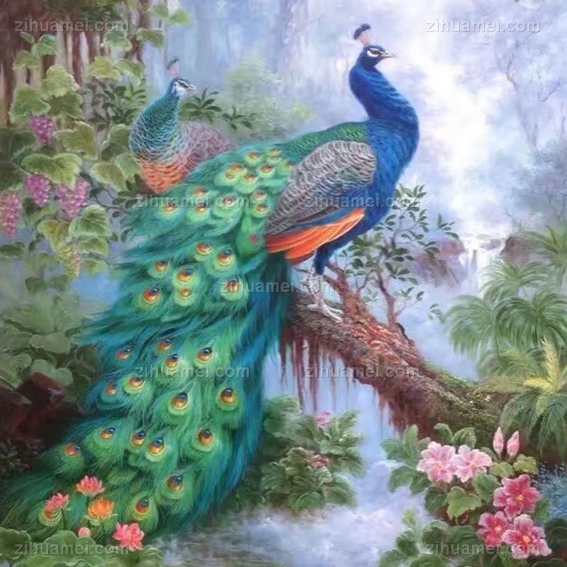 • Pure hand-painted hand-painted double peacock noble smart free Chinese oil painting family hanging painting D
