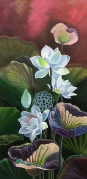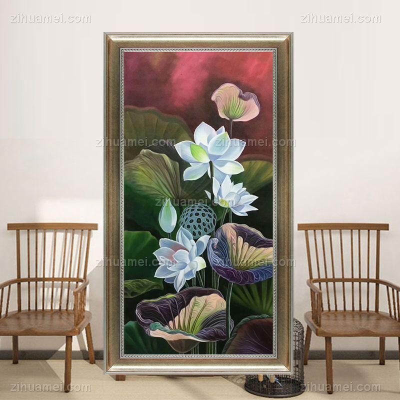 • Pure hand-painted handmade lotus beauty Chinese oil painting family hanging painting Hotel hanging painting office hanging painting D