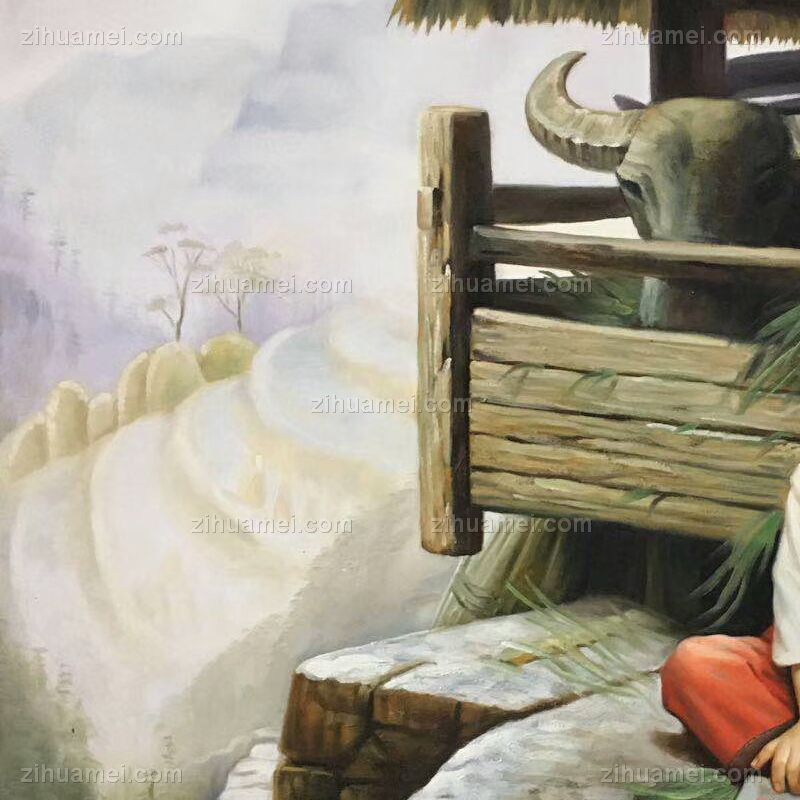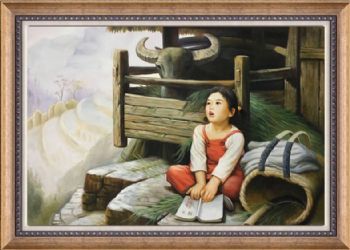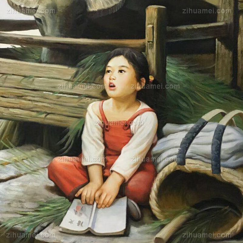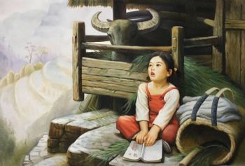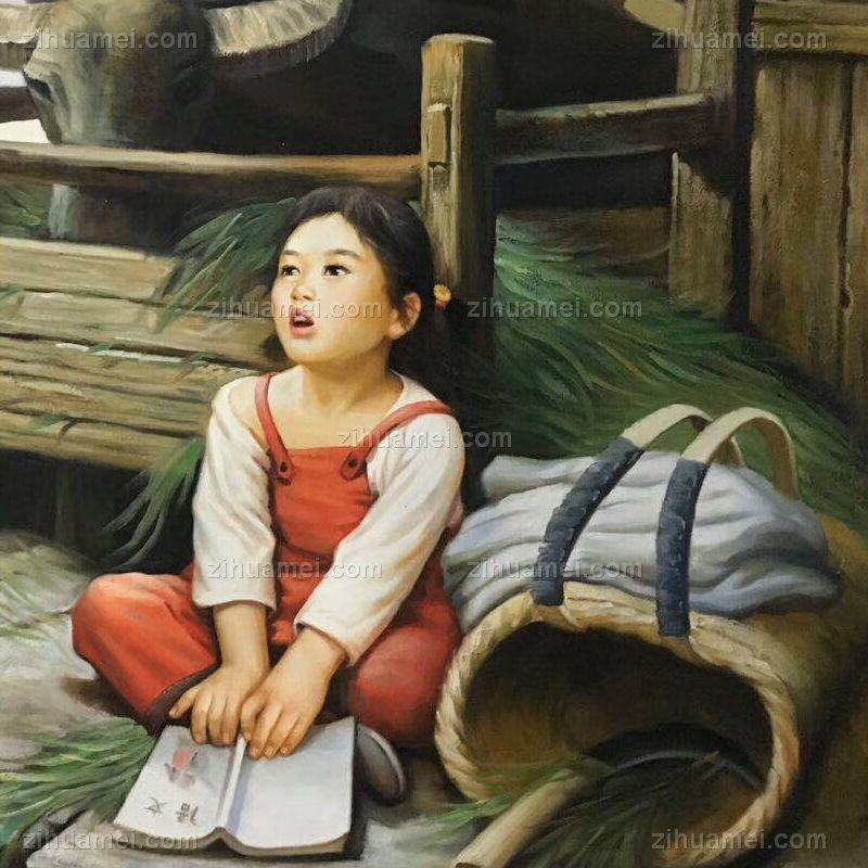• Pure hand painted oil painting Chinese oil painting living room fireplace porch decoration hanging painting childhood girl mowing cattle