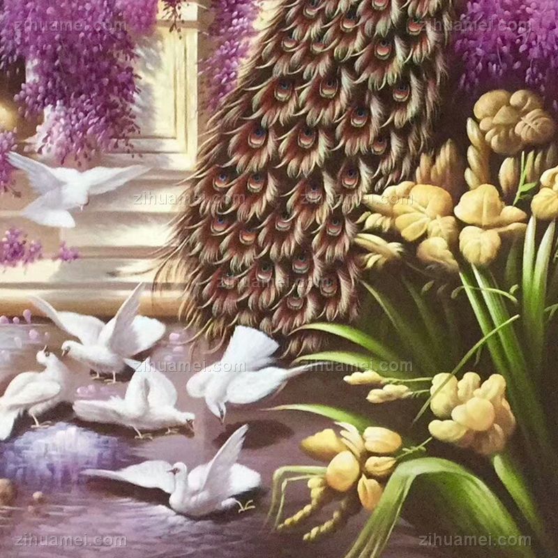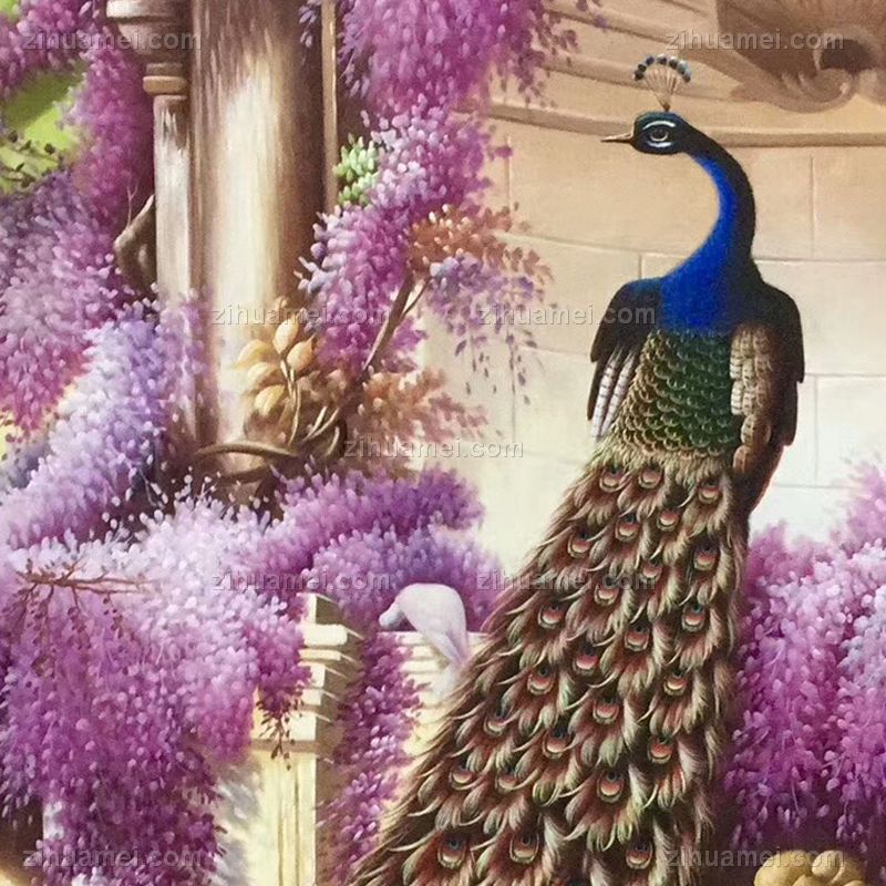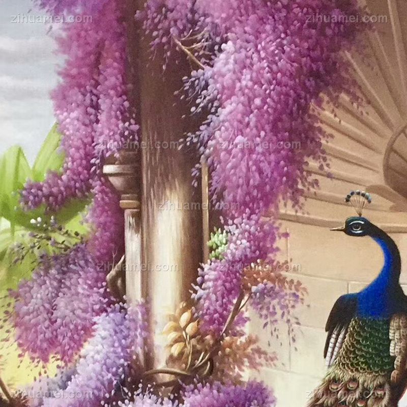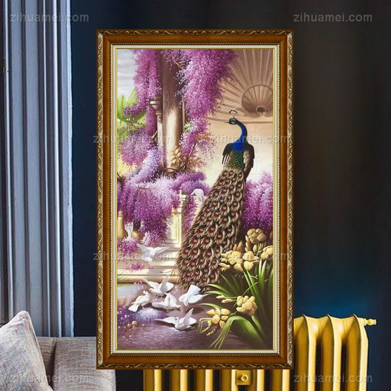 • Hand painted living room mural peacock corridor hanging painting vertical version porch decorative painting corridor customization