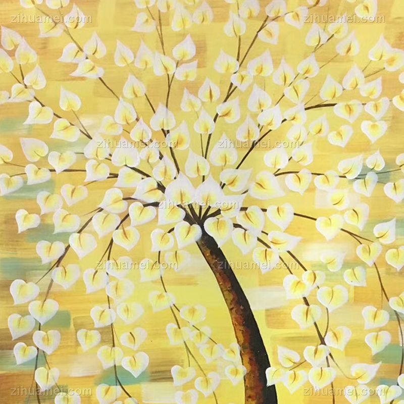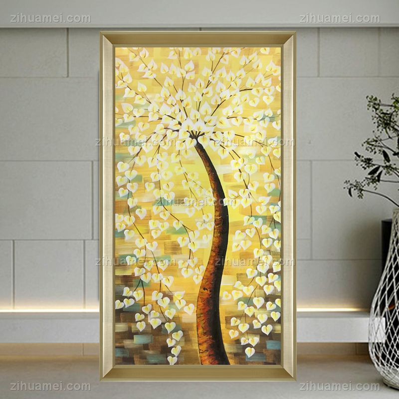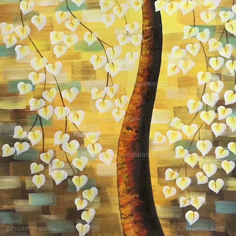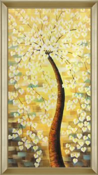 • Hand painted, handmade, golden tree, fortune tree, golden yellow Chinese oil painting, family painting, hotel painting, office painting