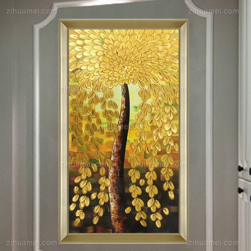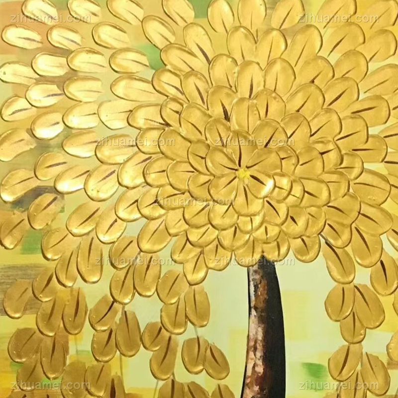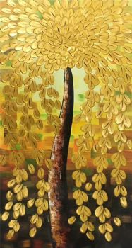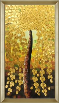 • Hand painted Handmade Gold Tree fortune tree golden Chinese oil painting hanging painting in living room hanging painting in hotel hanging painting in office