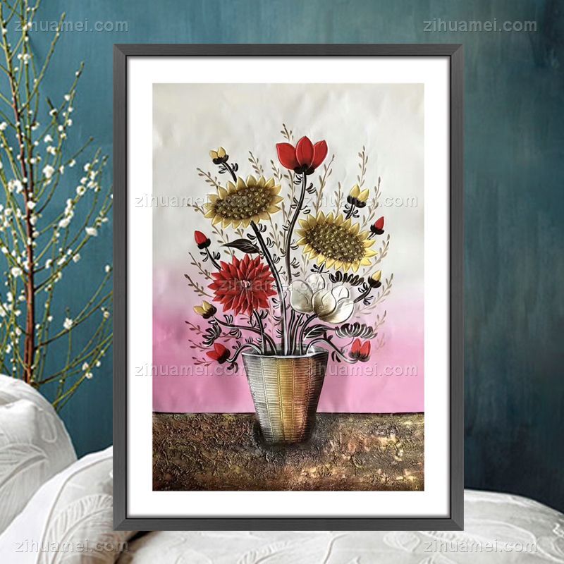 • Sunflower oil painting hand-painted living room porch decorative painting modern simple mural corridor vertical hanging painting flowers