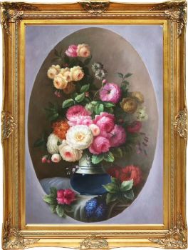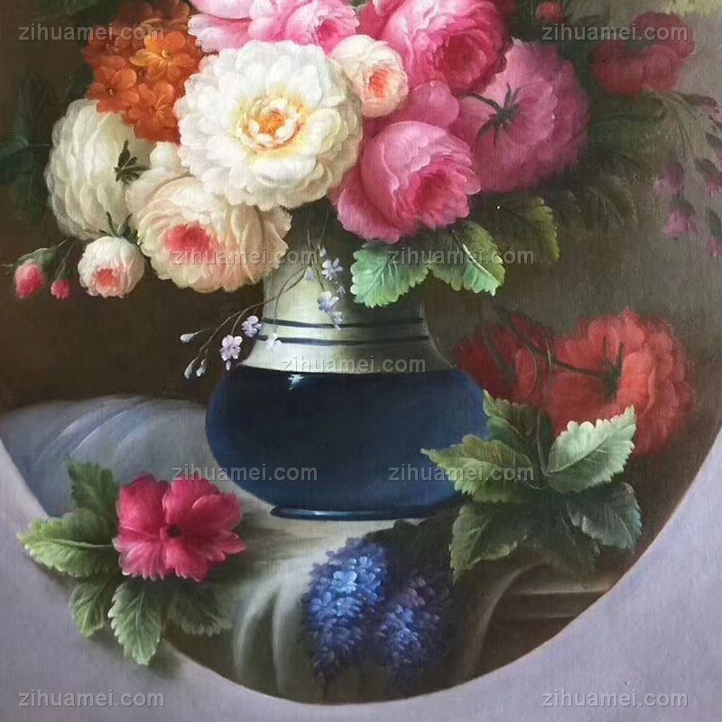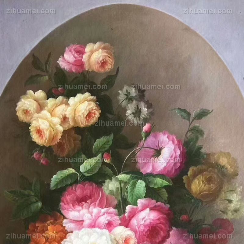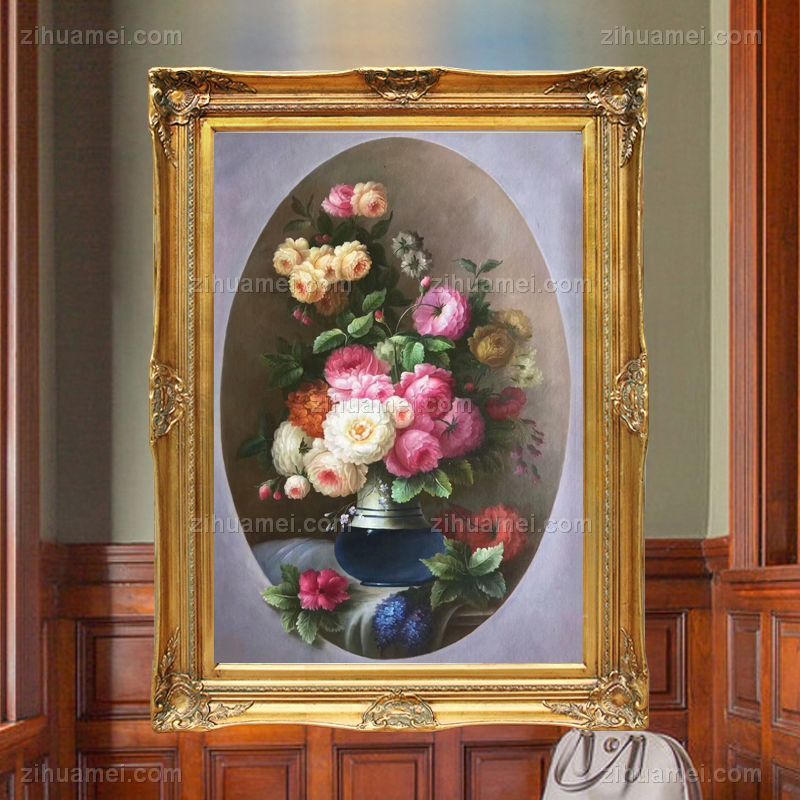 • Hand painted oil painting European oil painting flowers American mural hanging painting round picture core corner frame in the porch of the living room B