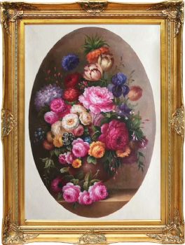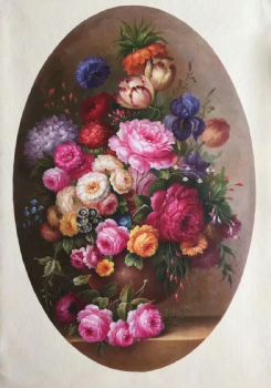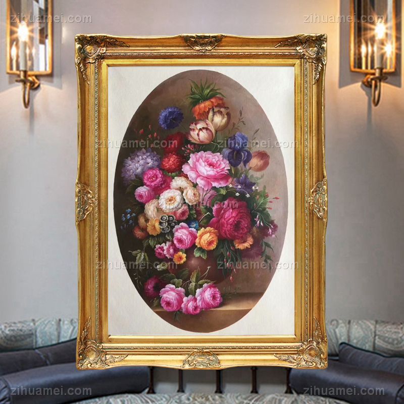 • Hand painted oil painting European oil painting flowers American mural hanging painting round picture core corner frame in the porch of the living room A