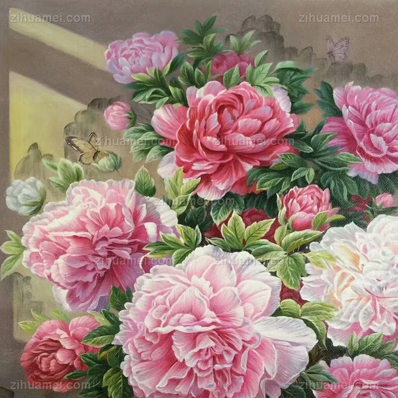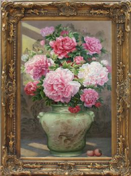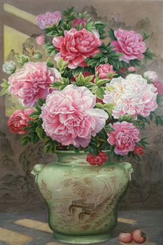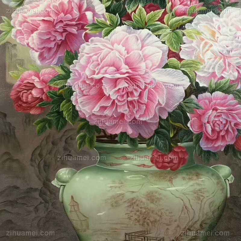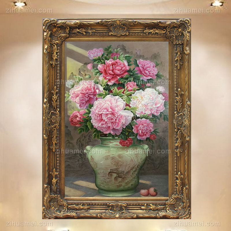 精品油画牡丹青花瓷