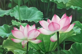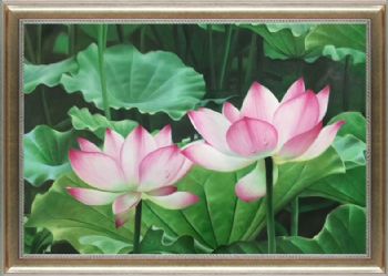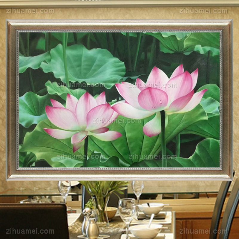 • Lotus oil painting flower decoration hand-painted new Chinese porch corridor corridor restaurant background mural