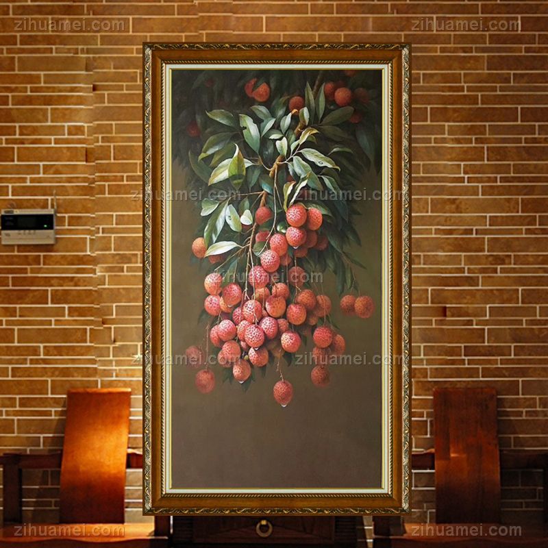 • Hand painted oil painting porch decorative painting framed restaurant mural bedroom hanging painting classical fruit still life litchi