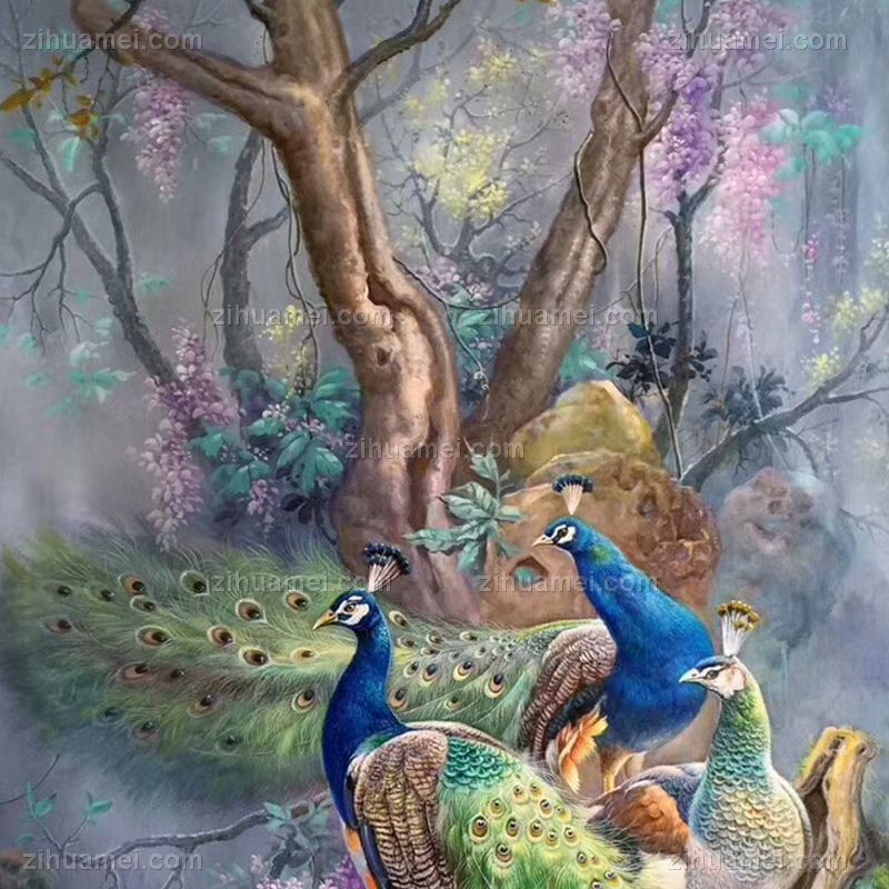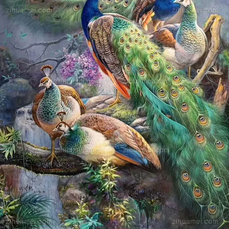 • Pure hand-painted hand-painted peacock painting white headed, noble, smart and free Chinese oil painting family hanging painting Hotel hanging painting