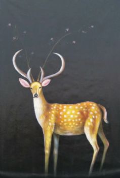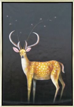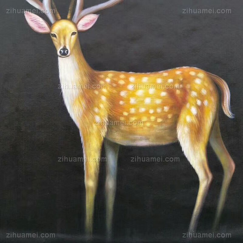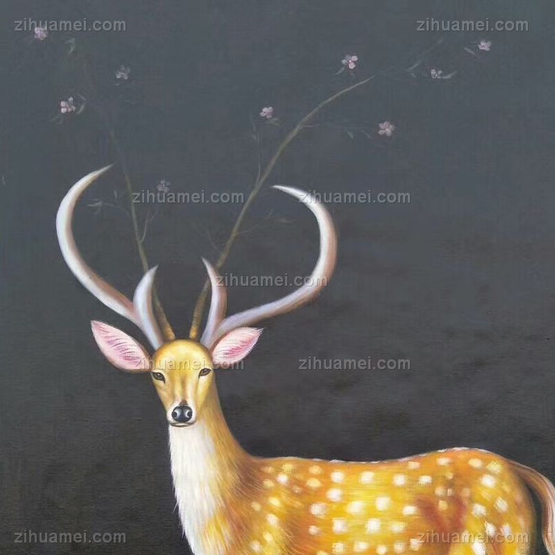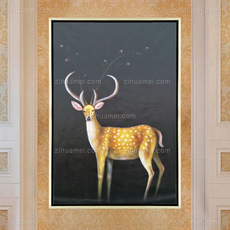 • Pure hand painted oil painting deer back simple North European Abstract mural Chinese style simple painting bedroom bed head decoration painting model room hanging painting