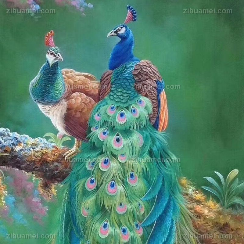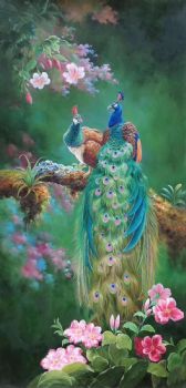 • Hand painted oil painting with two peacocks standing on the branches signifies special love between husband and wife