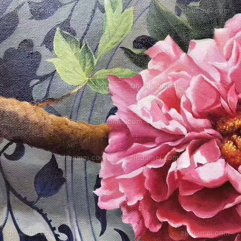 • High end realistic oil painting rich peony living room hanging painting collection oil painting hand-painted oil painting Chinese oil painting
